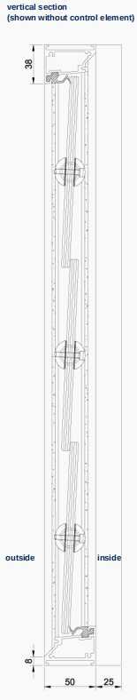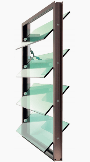Louvre windows consist of one or more louvers lying on top of the other, which open as pivoting sashes via a horizontal axis of rotation. The part of the wing below the axis of rotation opens outwards and the part above it opens inwards. As a rule, the axis of rotation is in the middle of the slat height; can also be offset up to 1/3 – 2/3 after technical clarification(automated application only)